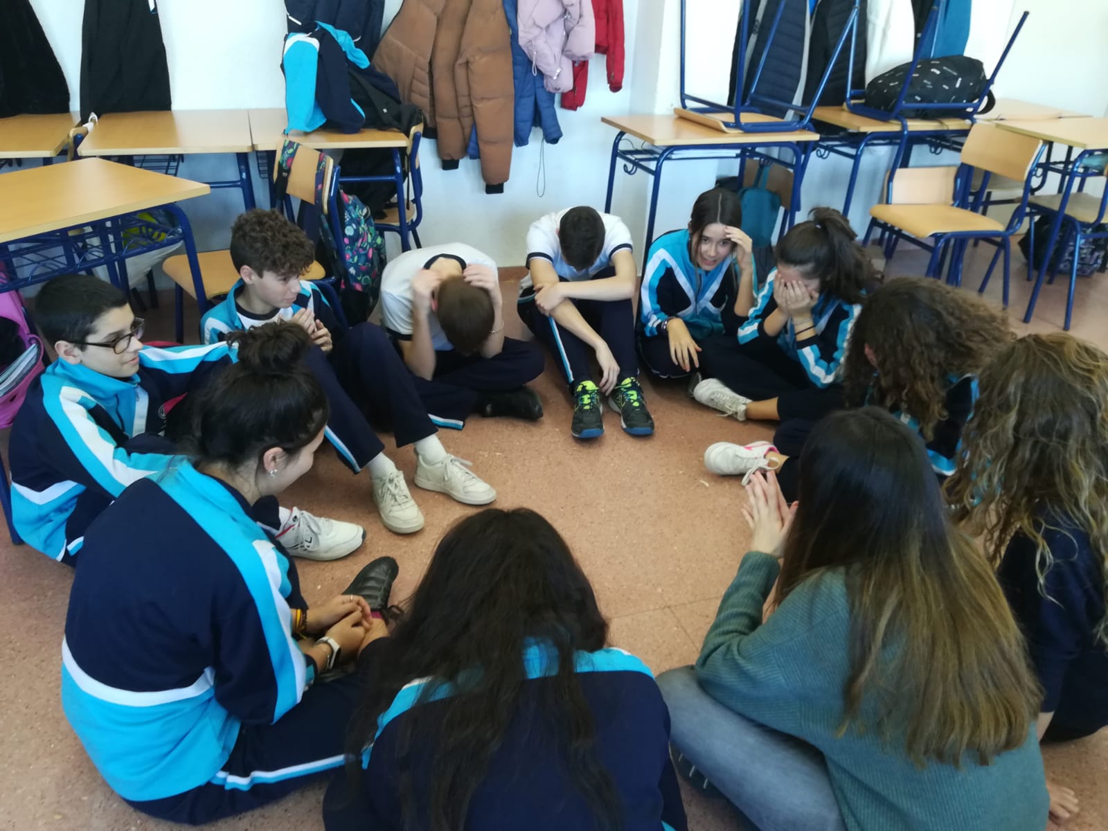 Las alumnas se dividieron en dos grupos , cada grupo fue a una clase para hacer a través de una gincana sobre las distintas dinámicas que prepararon en clase.